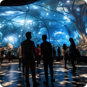 A barefoot walk through immersive digital art.